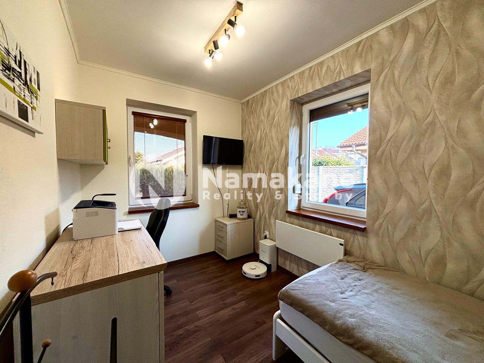 Dom je perfektne presvetlený, vzdušný a veľmi rozumne zariadený. Dispozične je riešený prakticky a funkčne, pričom v povalovej časti ponúka ďalší úložný priestor so vstupom cez stropný sťahovací rebrík z chodby.